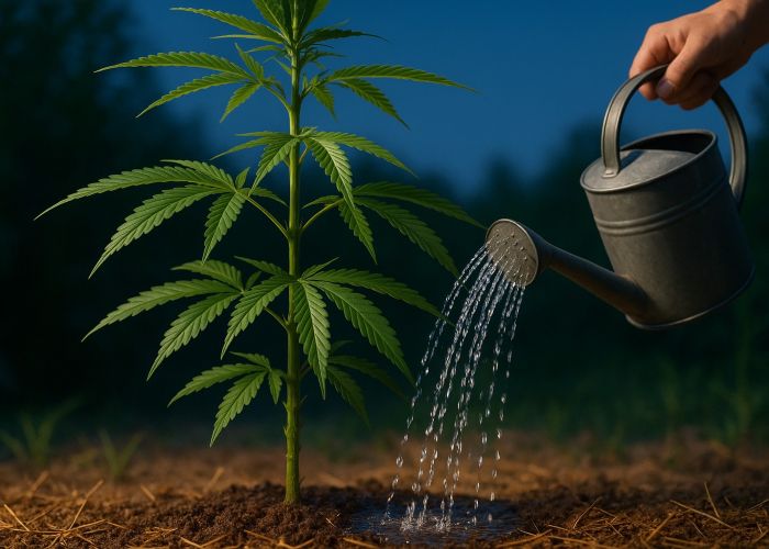 Не менш важливо й те, що ранковий полив відповідає природному ритму канабісу. Це рослина, сформована в умовах чергування сухого дня й вологого світанку. Вона «очікує» вологу на початку дня, щоб пройти денний стрес із достатнім запасом ресурсів. А от волога ніч для неї — нетипове й навіть тривожне явище. Надлишок води у темний час сприймається радше як потенційна загроза: сигнал до гальмування, можливого ураження грибками чи нестачі кисню в ґрунті.